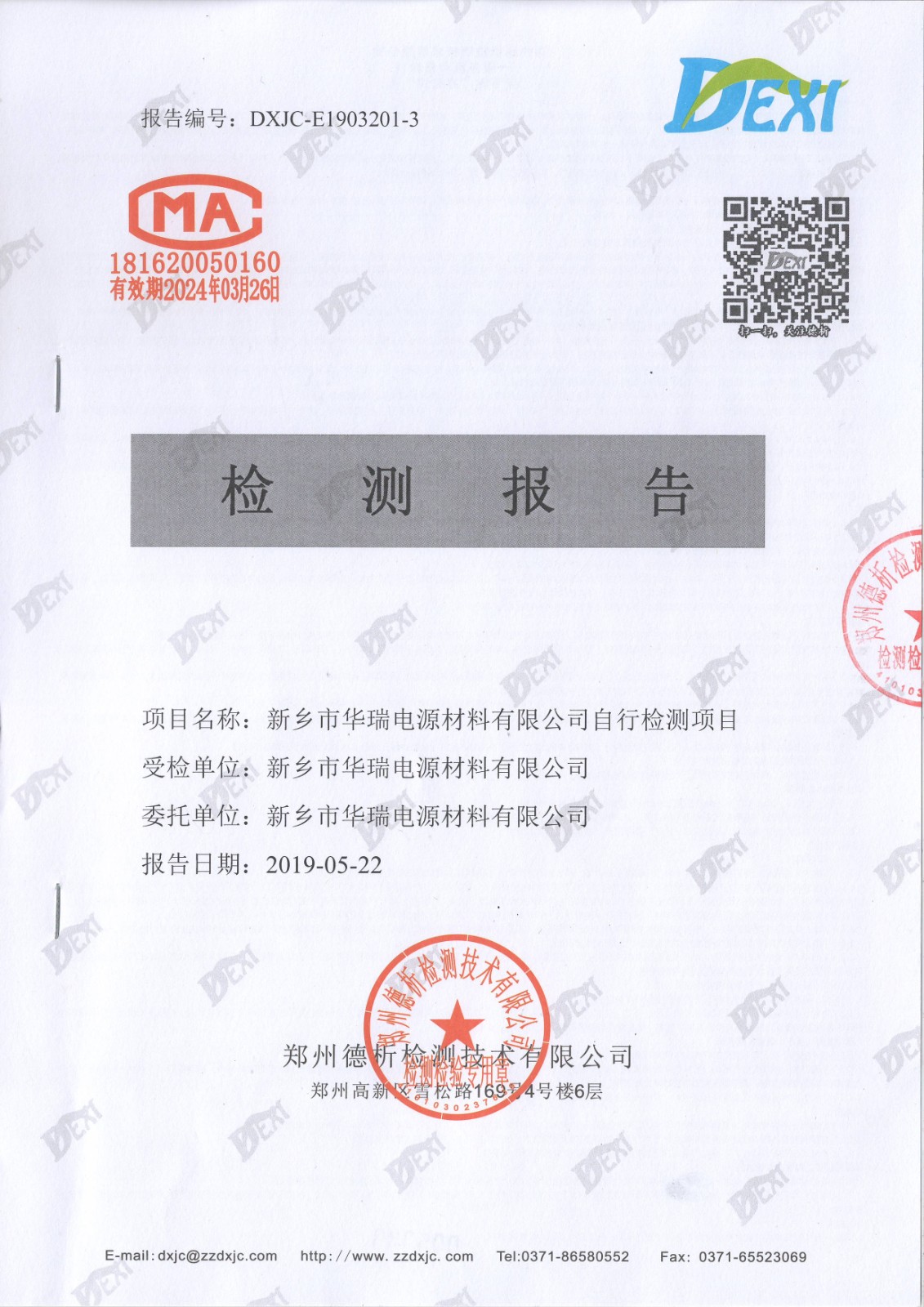 2019年5月份廢水廢氣檢測報(bào)告