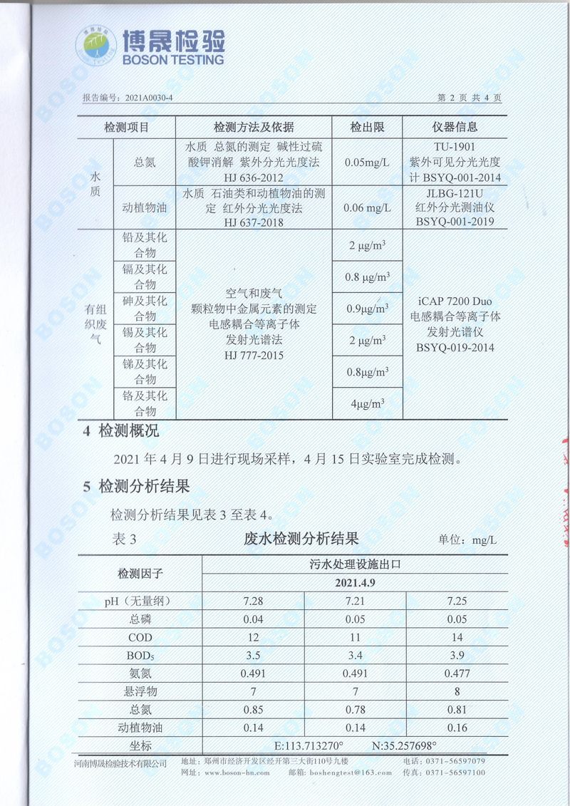 2021年4月廢水廢氣檢測報告